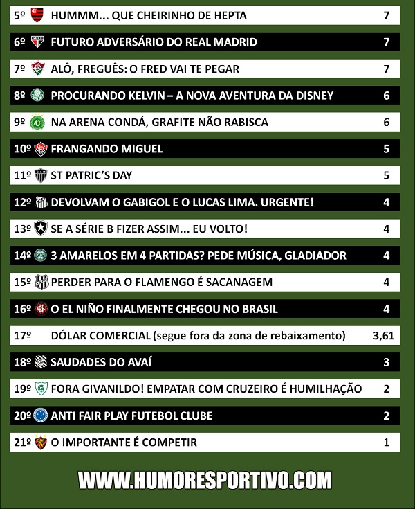 TABELA DA ZOEIRA 5ª RODADA DO BRASILEIRÃO 2016